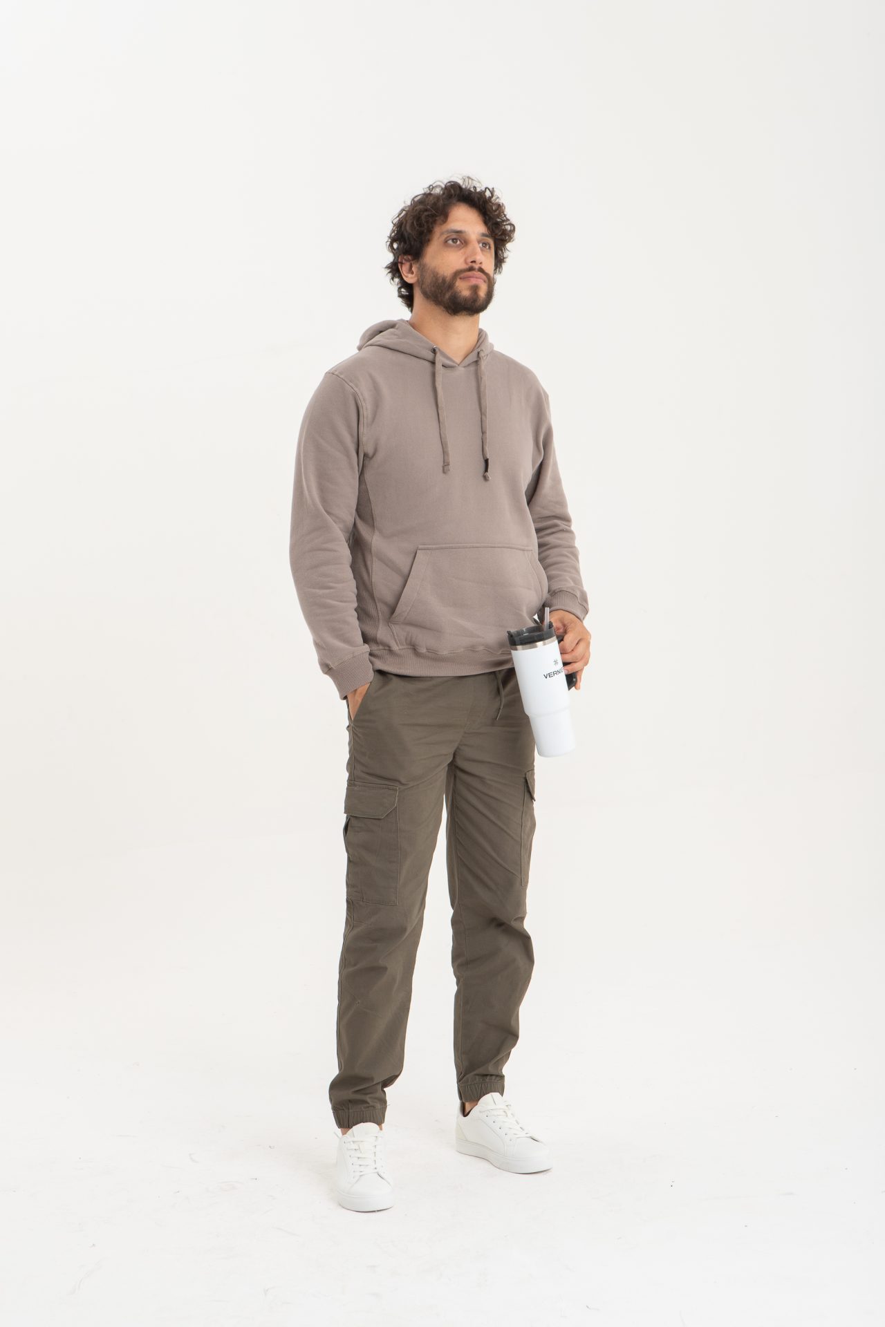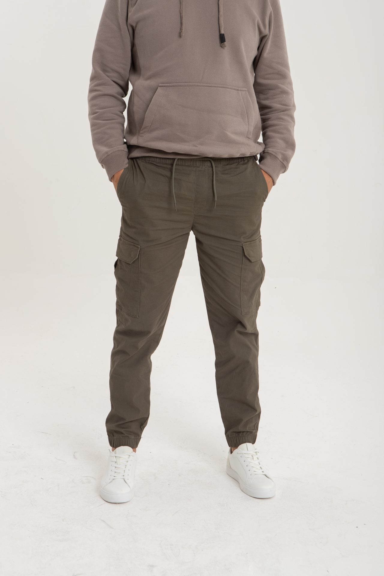 Pantalón cargo jogger de gabardina para hombre (97 % algodón, 3 % spandex) en color arena, combina funcionalidad y confort. Disponible en locales Vernier de todo Uruguay y en tienda online con garantía de calidad Vernier.